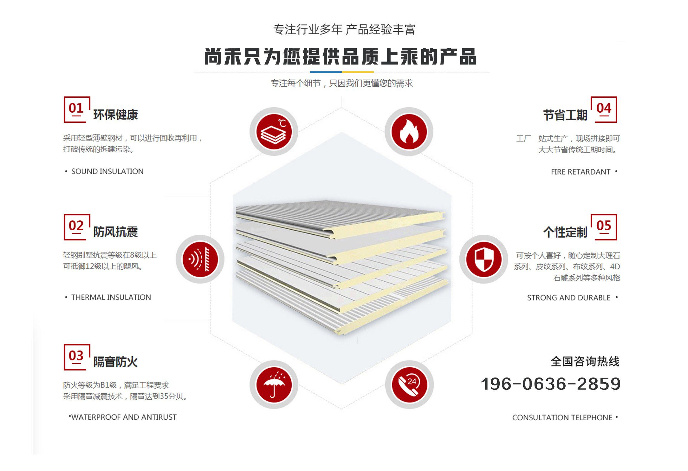 山東尚禾經(jīng)貿(mào)有限公司是集板材設(shè)計(jì)、研發(fā)、生產(chǎn)、施工、一體化的科技公司,并在同行業(yè)中率先通過了質(zhì)量、環(huán)境、安全管理體系認(rèn)證。公司2011年投入資金2000余萬元引進(jìn)世界先進(jìn)的聚氨酯節(jié)能板連續(xù)生產(chǎn)線、意大利進(jìn)口發(fā)泡系統(tǒng),采用六組份在線自動操作混合澆注技術(shù),在線一次性完成社會配料中心或工廠的配比混合工藝,并可以根據(jù)溫度在線自動調(diào)整,從而生產(chǎn)處與眾不同的高強(qiáng)度、節(jié)能型、綠色環(huán)保的聚氨酯夾芯板。(其使用年限高于同行業(yè)其他品牌5-10年)  公司主要經(jīng)營范圍包括聚氨酯夾芯板,PU夾芯板,冷庫板,潔凈板,聚氨酯冷庫板,冷庫保溫板的設(shè)計(jì)、生產(chǎn)、銷售、技術(shù)指導(dǎo)、安裝及一體、以及進(jìn)出口業(yè)務(wù),是中部六省最大的綠色節(jié)能建材生產(chǎn)基地。聚氨酯夾芯板年產(chǎn)200萬平方米、PU夾芯板、冷庫保溫板500萬平方米、鏈整產(chǎn)業(yè)綜合實(shí)力,開創(chuàng)了六省至中西部創(chuàng)新型中小名企總部基地,并將著力推進(jìn)中國中西部地區(qū)集成房屋住宅產(chǎn)業(yè)化發(fā)展進(jìn)程。  科技創(chuàng)新、節(jié)能典范。千萬間始終秉承“誠信、合作”的企業(yè)文化精髓,長期致力于鋼板材結(jié)構(gòu)節(jié)能建筑產(chǎn)業(yè),愿與社會各界攜手合作,共鑄綠色、環(huán)保美好未來。 產(chǎn)品具有良好的絕熱、阻燃、隔音、環(huán)保、耐久性能,可廣泛應(yīng)用于工業(yè)、商用建筑內(nèi)外墻、以及民用建筑外墻保溫、空調(diào)通風(fēng)系統(tǒng)、專用防火保溫門等領(lǐng)域。  我們始終秉承...